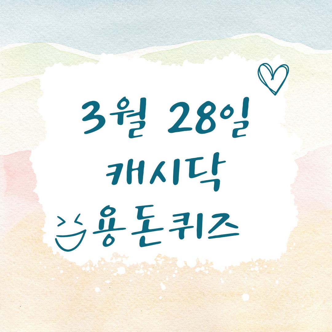 2025년 3월 28일 캐시닥 용돈퀴즈 문제와 정답을 공개합니다.