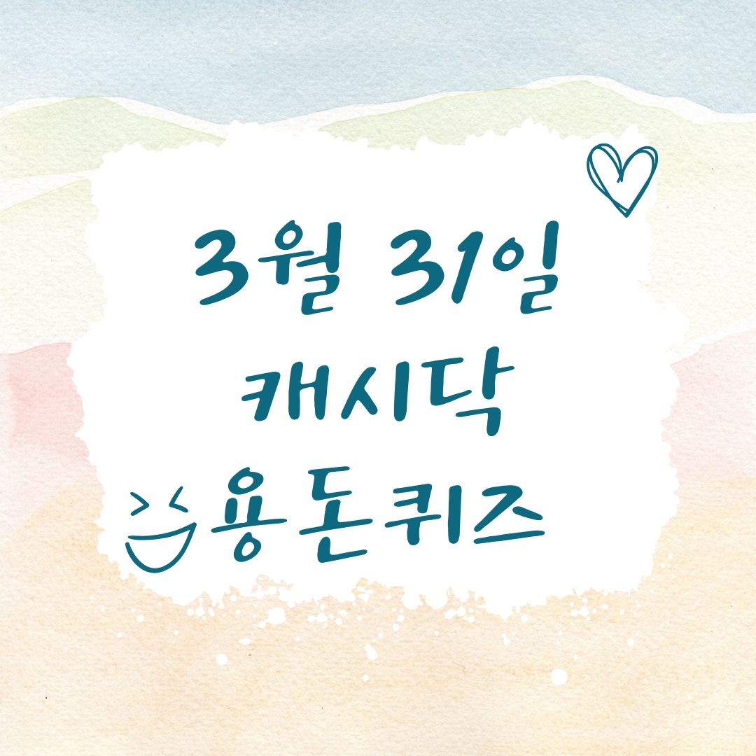 2025년 3월 31일 캐시닥 용돈퀴즈 문제와 정답을 공개합니다.