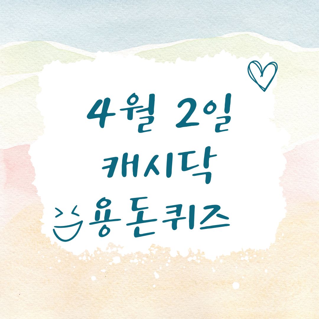2025년 4월 2일 캐시닥 용돈퀴즈 문제와 정답을 공개합니다.