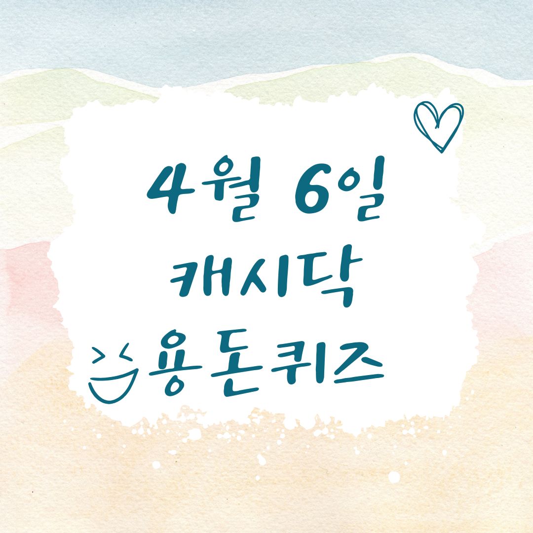 2025년 4월 6일 캐시닥 용돈퀴즈 문제와 정답을 공개합니다.